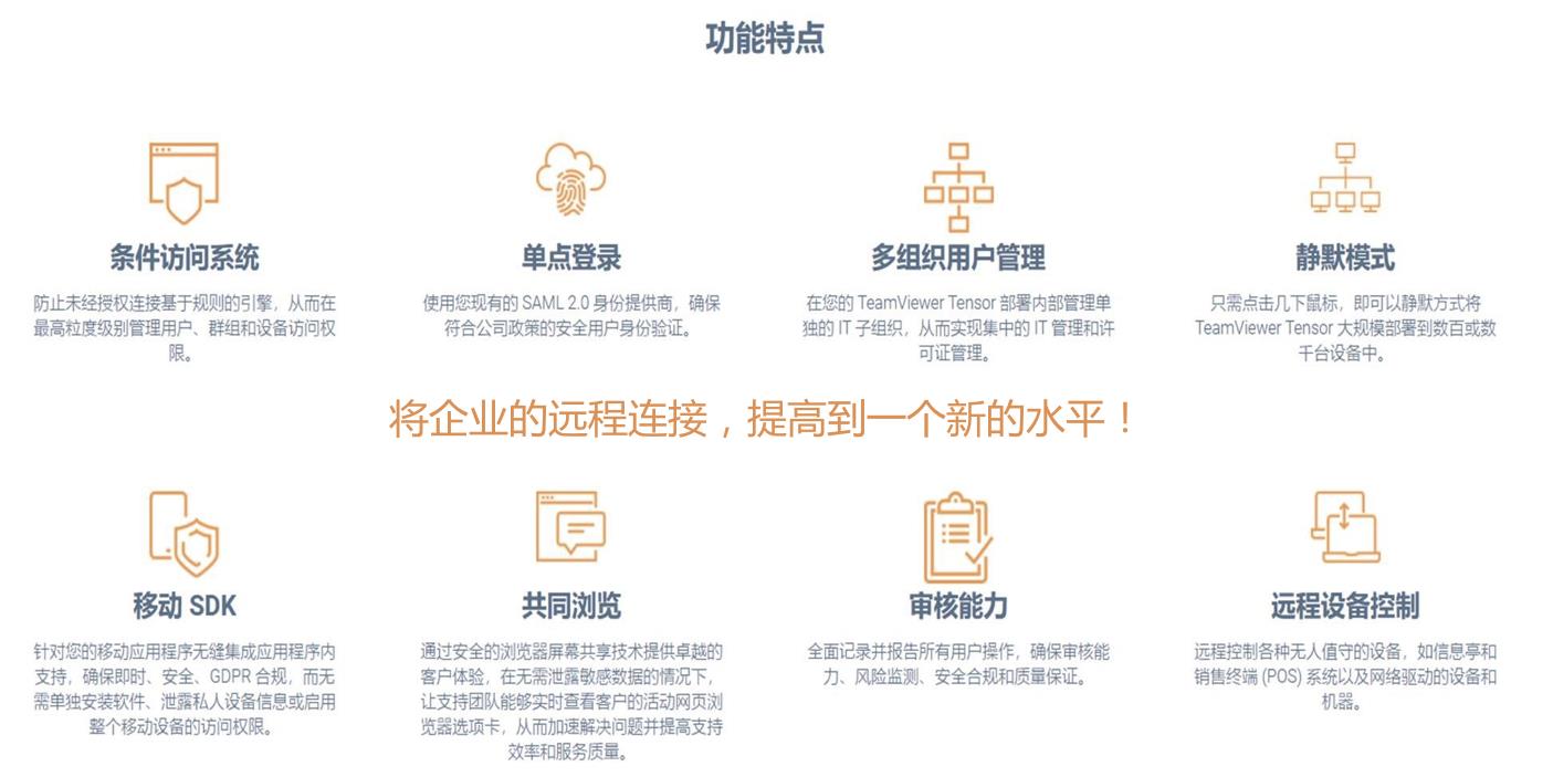 除此之外,很多企业级管理也是客户所关心的内容。例如:多组织用户管理可以分级管理员或整合多套teamviewer软件。大规模部署、无人值守等大企业高级远程管理。