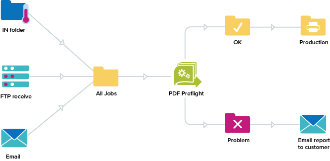 PitStop Server 通过以下方式为您的PDF生产过程带来了 强大的质量控制和自动化功能: