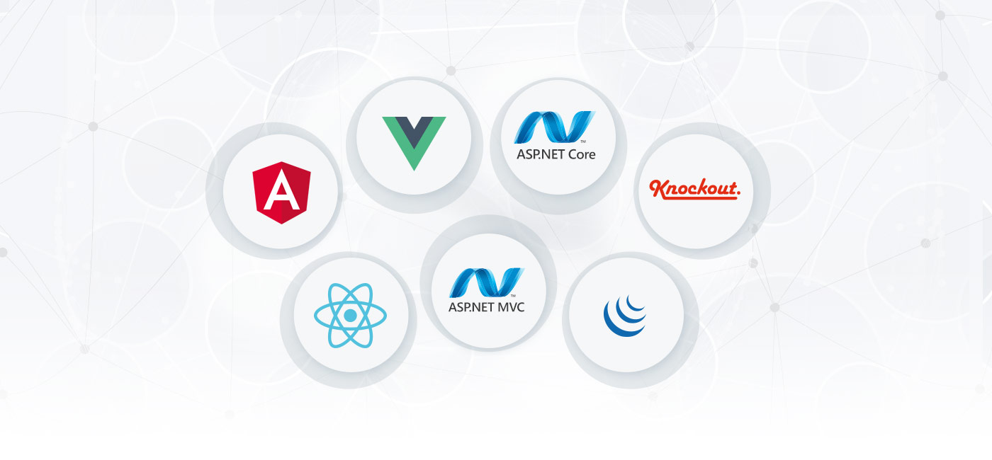 支持Angular / React / Vue,TypeScript,ASP.NET Core,Razor等语法。内置的低级集成允许您在Angular,Vue,React,Ionic,ASP.NET MVC或ASP.NET Core框架中使用DevExtreme小部件。数据绑定使用现代JavaScript框架的熟悉概念-使用您了解和喜爱的技术。