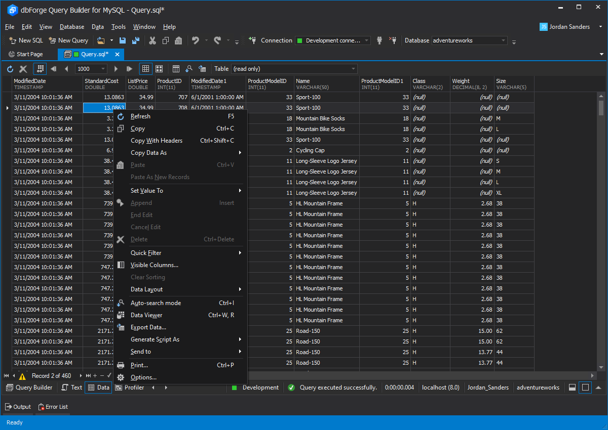 用于MySQL的dbForge查询生成器是一种可视化工具,可用于创建从简单查找到复杂JOIN的各种MySQL查询。该工具提供了广泛的兼容性选项,只需单击几下即可帮助构建和编辑复杂的MySQL查询。您无需费心构建复杂的代码-只需在图表上“绘制”查询即可。