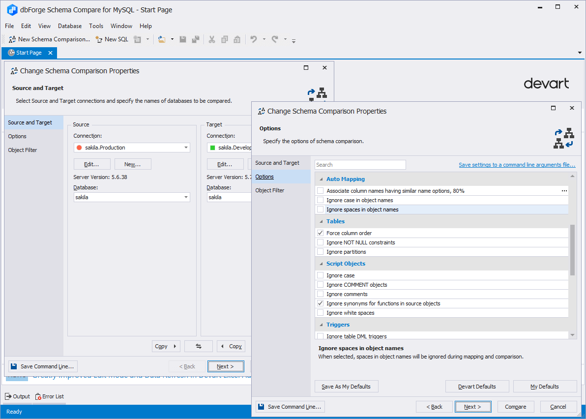 dbForge Schema Compare for MySQL比较和同步MySQL数据库架构