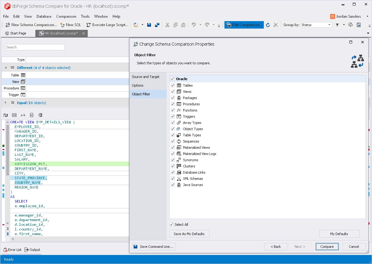 dbForge Compare Bundle旨在帮助您轻松处理Oracle数据库中的更改,从而节省了比较和部署Oracle数据库数据和模式的工作时间。