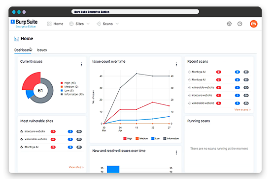 PortSwigger Burp Suite Enterprise 企业版 动态企业级Web漏洞扫描程序。扫描引擎加载了现代漏洞检测引擎。通过详细的解释,可以轻松识别复杂的攻击。扫描完成后,能够使用结果中的概念验证来重现问题,从而提供更详细的理解和相应的修复。