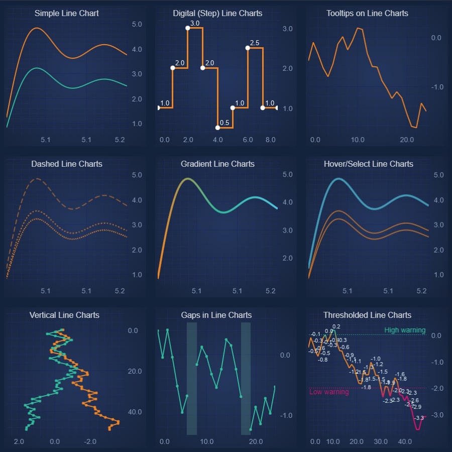 SciChart.js专为易于使用而设计。我们提供了多套视频教程、40多个带源代码的代码示例以及数百个文档页面,以确保您可以在最短的时间内开始工作。我们的开发人员,也就是编写该库的人,正在运行对试用客户免费的论坛,并通过票证向我们的付费客户提供帮助。