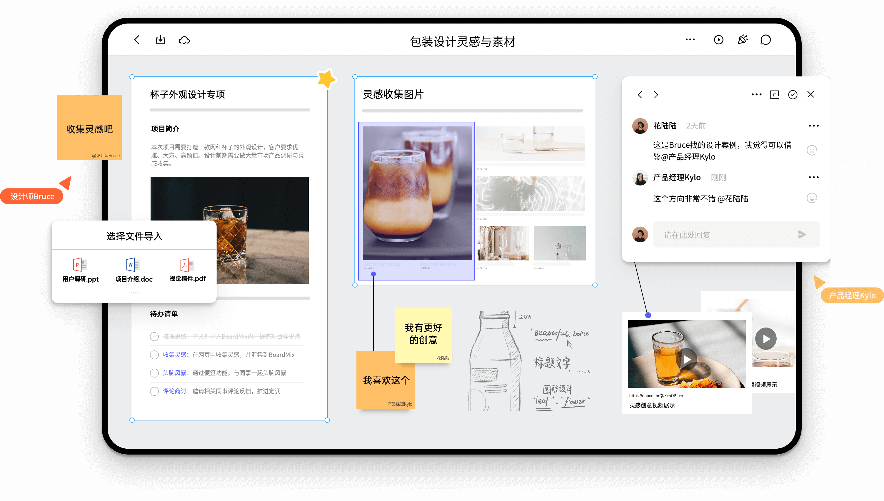 - 创意与灵感探索:通过画笔、便签、插入图片、文件、超链接,让画布汇聚每一个灵感