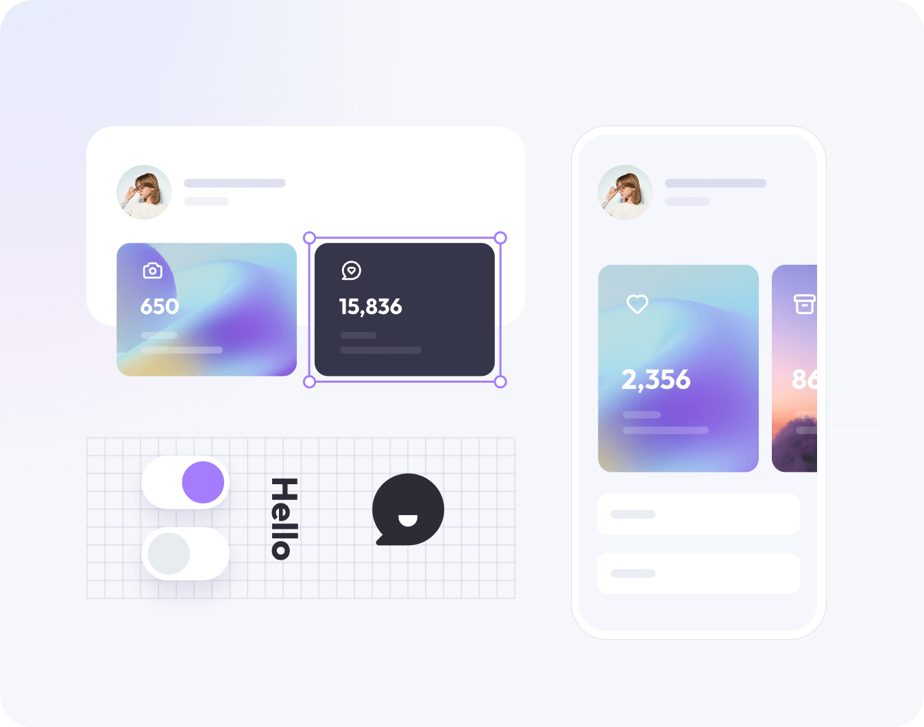 - 自动布局 将任何图层或对象添加至自动布局框架中,通过自动布局,创建响应式动态分布,无需手动反复调整尺寸。