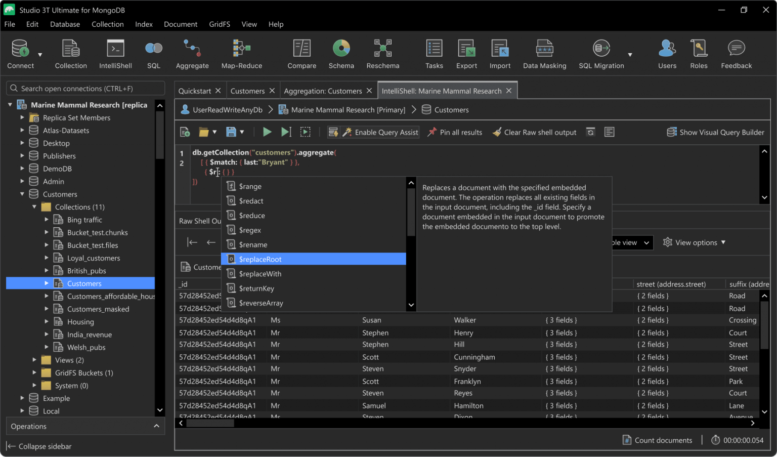 忘记您所知道的mongo shell。利用IntelliShell的实时错误突出显示和智能自动完成JavaScript标准库函数、特定于shell的类型和方法、运算符、集合名称、字段名称、shell帮助器命令、返回值的进一步完成等,可以节省时间。这是使用MongoDB的重要组成部分。