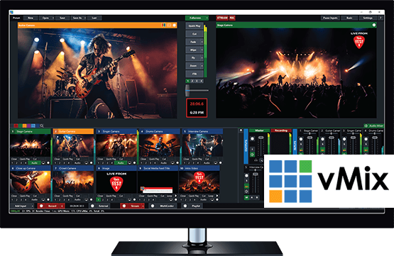 vMix 是一款直播和制作软件,可让您在自己的计算机上创建专业品质的作品。vMix 使您能够使用vMix Call来添加多个摄像机、视频、 NDI 源、远程来宾、图像、音频、网络流、Powerpoint、标题、虚拟场景、色度键等到您的作品中。然后,您可以同时显示、录制和直播您的作品!