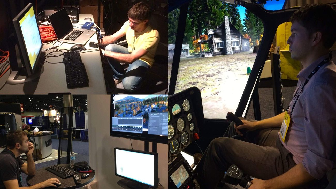 这款搜救任务模拟器(直升机型号:Bell-206 Ranger)以美国华盛顿州的一个真实地区为背景。由于旋翼机可以在任何地方低空盘旋,因此专业飞行员训练需要高分辨率地理参考视觉数据库。摇曳的草丛、尘云(褐色)等视觉提示对于 VFR(目视飞行规则)训练也很重要,各种天气和照明条件也很重要。在茂密的森林和山区找到安全的着陆区是直升机机组人员在搜救任务模拟中面临的一项关键考验。该系统在 I/ITSEC 2013 活动上进行了展示。