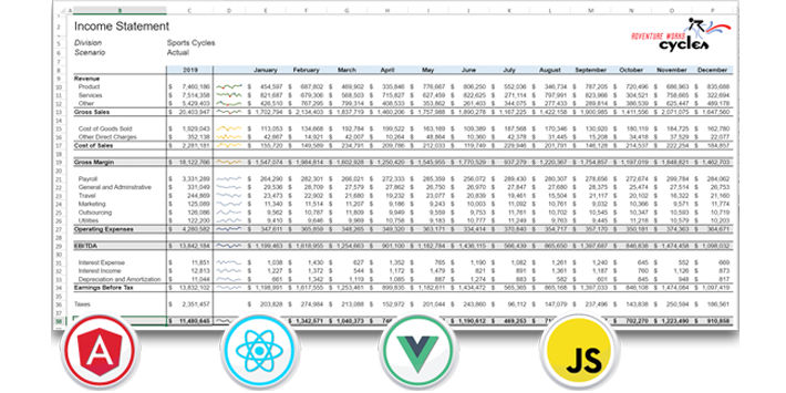 纯前端组件、跨平台应用嵌入 -SpreadJS 支持跨平台开发,使用其功能无需预装任何插件或第三方组件,支持以原生的方式嵌入各类应用,与各类后端技术框架相结合