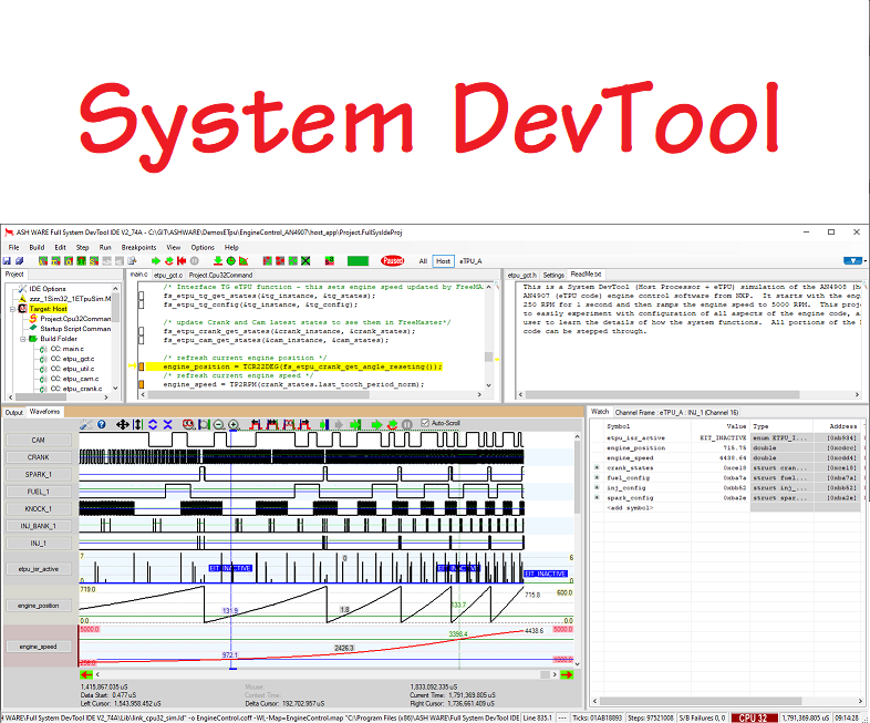 为 NXP 的 MPC55xx、MPC56xx、MPC57xx Power Architecture 微处理器、MCF52xx Coldfire 微处理器和 STMicroelectronics SPC563Mxx 微处理器系列中的所有 eTPU、eTPU2 和 eTPU2+ 目标提供全面仿真和编译支持。为 MC33816 提供全面仿真和汇编支持,为 CPU32 提供全面仿真支持。
