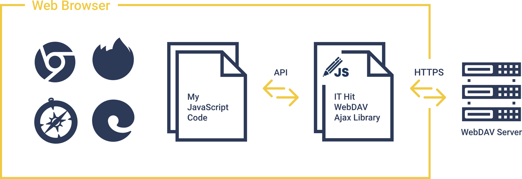 · 该库提供了一个高级 JavaScript API,无需研究 WebDAV 标准和协议。API 调用由 IT Hit WebDAV AJAX 库转换为 WebDAV XML 请求,并提交到 WebDAV 服务器。然后,该库将解析 WebDAV 服务器响应,并将其作为高级对象返回给用户。