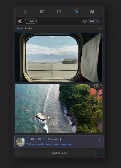 使用 Universal Search 即时收集您的所有媒体资产 — 从流行的模因到完整的设计分类,整个免版税和开源媒体互联网都可以直接下载到您的时间线中。