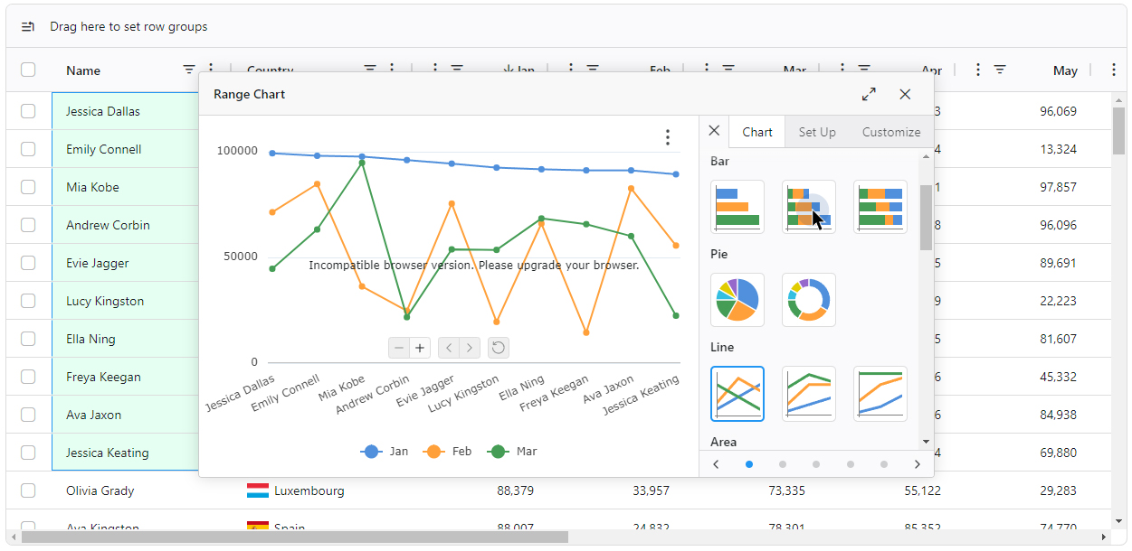 AG Charts 为集成图表提供 AG Grid 中的功能——我们提供引领市场的数据网格库,90% 的财富 500 强企业都在使用它。购买 Enterprise Bundle 许可证来访问 AG Grid 和 AG Charts 中的所有企业级功能。
