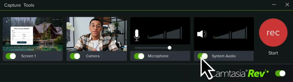 首先以令人惊叹的 4K 分辨率捕捉屏幕,确保每个细节都清晰无比。同时,您可以录制网络摄像头、麦克风和系统音频,每个音频都在自己的专用轨道上。