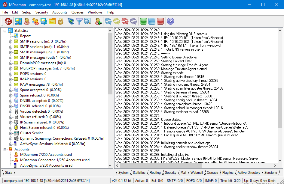 MDaemon 通过实施多项电子邮件安全功能来保护用户免受垃圾邮件、网络钓鱼、病毒和其他恶意软件威胁,继续作为早期采用者引领行业。AI 垃圾邮件防护、电子邮件身份验证(SPF、DKIM、DMARC)、被劫持帐户检测、垃圾邮件机器人检测、SMTP 和动态筛选、位置筛选、外部消息警告、DNSSEC 请求、Let's Encrypt 服务、泄露密码识别、IP 屏蔽、灵活的内容过滤器和自定义帐户管理只是其中的几个例子。