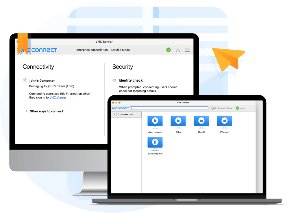 · 始终知道谁在连接-Code Connect 要求任何访客用户创建自己的 RealVNC Connect 帐户( 不需要订阅 ),以防止匿名用户访问您的设备。