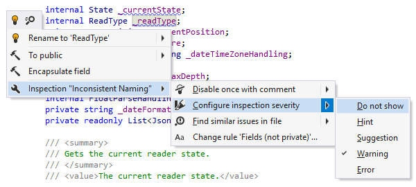 即时修复有助于消除错误和代码异味。 当您的代码中有问题时,ReSharper不仅可以向您发出警告,还能提供快速修复,自动解决这些问题。