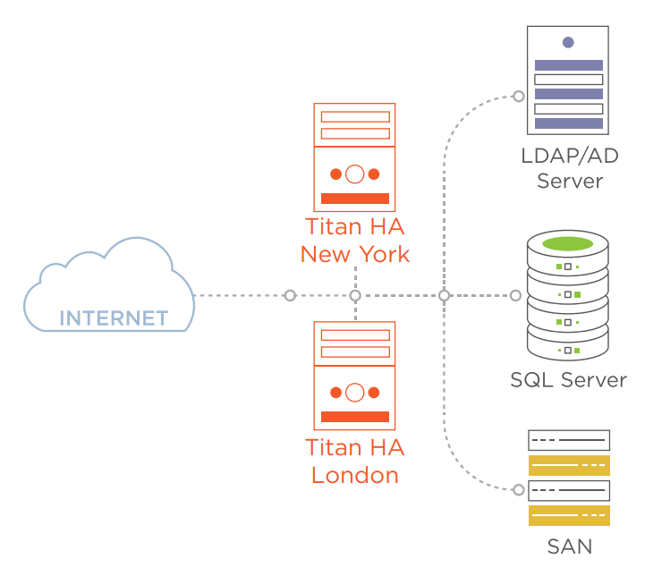 Titan FTP Server集成了您正在使用的目录服务——Active directory或LDAP。如果您的组织不使用其他目录服务进行身份验证,Titan还支持本地身份验证。Titan直接通过AD或LDAP服务器验证权限和访问权限,而不是导入副本。这确保了Titan使用最新的访问控制列表,并且管理员不必在多个位置添加或更改用户。对于Titan Enterprise+,这促进了无与伦比的可伸缩性。
