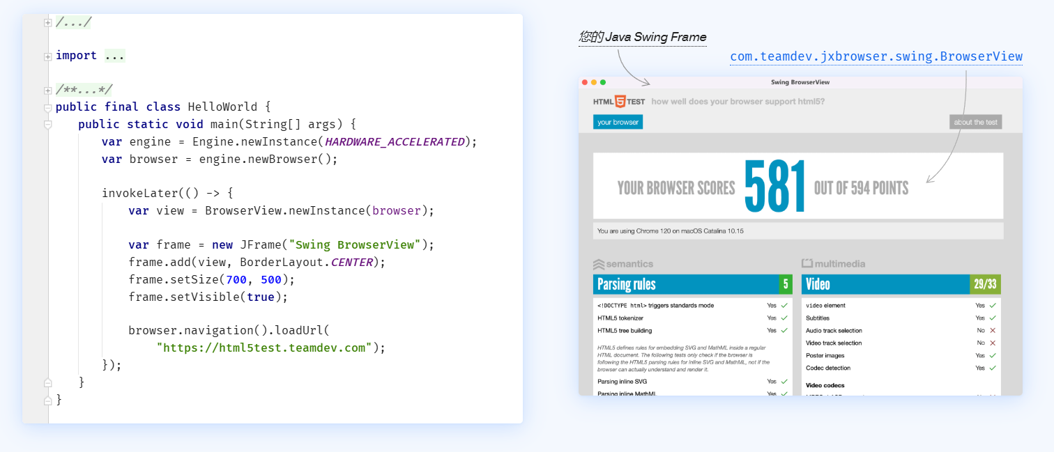 TeamDev JxBrowser将 Chromium 网页浏览器添加到您的 Java 应用程序中。在 JavaFX、Swing、SWT 中显示网页和 PDF。使用 DOM、JS、网络、打印、下载等。