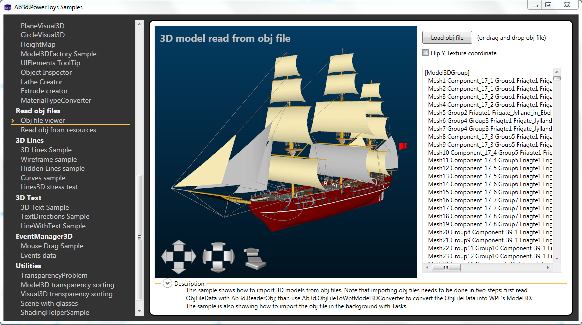 · 使用 Assimp 导入器(见下文),可以从 obj 文件(已集成在 Ab3d.PowerToys 中)或几乎所有其他 3D 文件导入 3D 模型。