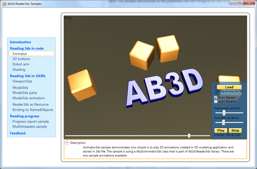 Ab3d.Reader3ds 是一个类库,可用于从 3ds 文件中读取 3D 模型。几乎可以在任何 3D 建模软件中创建 3D 模型。应用程序并在您的 WPF 应用程序中使用它们。