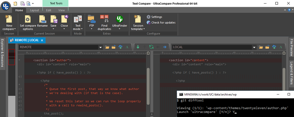 UltraCompare强大的比较功能在FTP甚至网络共享和连接的驱动器上也能正常工作。只需单击即可从FTP打开,选择您的连接或创建一个新连接以保存以备将来使用。非常适合根据服务器上已有的内容快速检查本地文件和文件夹。