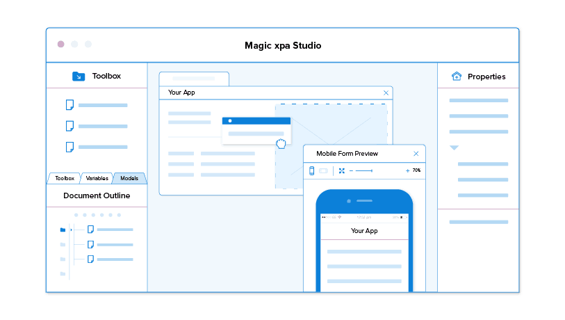 通过与Magic xpa合作开发Angular应用,您将从两全其美中受益:在Magic中定义业务逻辑并使用Angular代码开发演示文稿。出色的UX / UI-无需自行设计屏幕,即可轻松为您的应用程序创建直观而现代的屏幕。让Web设计人员处理屏幕,使您腾出精力做自己最擅长的事情。Angular很难处理的大型应用程序在使用Magic的Web应用程序框架时不是问题。使用Magic,即使是具有数千个屏幕的SPA应用程序也很容易。