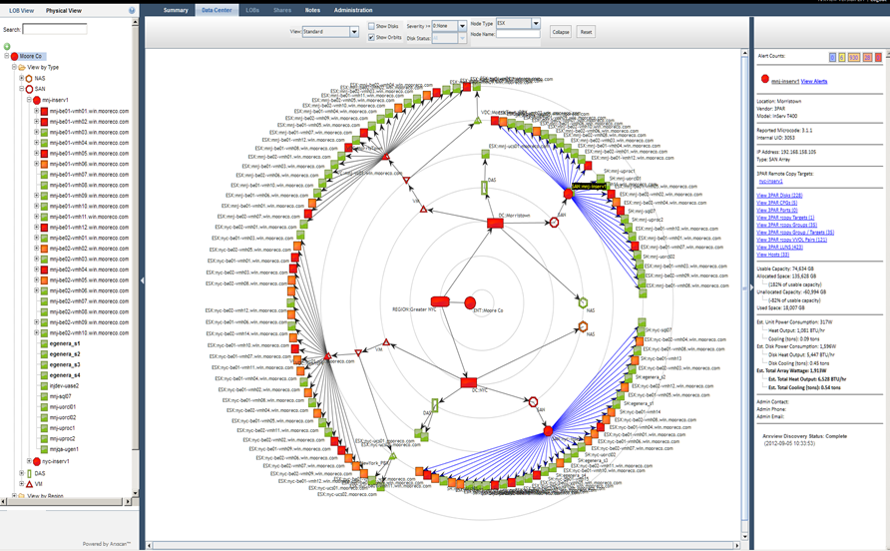 - VMware®映射 Arxview将来自来宾服务器的VMware®关系一直映射到存储阵列,并显示该路径中的每个项目:虚拟实例,主机服务器,虚拟数据中心,存储阵列,存储组,HBA和数据存储。