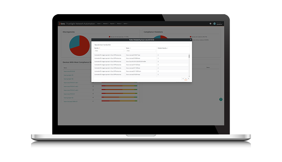 - 集成到BMC Discovery和CMDB以通过业务服务管理网络安全性和合规性