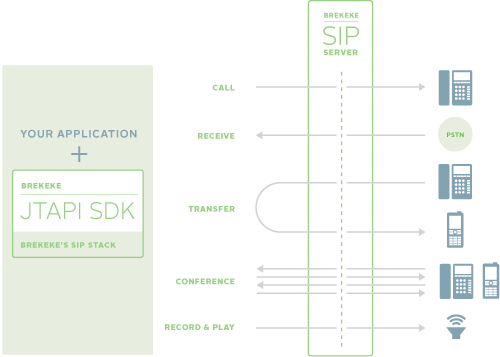 Brekeke JTAPI SDK是用于创建支持SIP的电话应用程序的软件开发套件。可以使用Brekeke JTAPI SDK开发的应用程序包括IVR(交互式语音响应)系统,会议服务器,回叫系统和其他电话应用程序。Brekeke JTAPI SDK还可以用于将现有的电话应用程序转换为SIP支持的产品和/或应用程序。