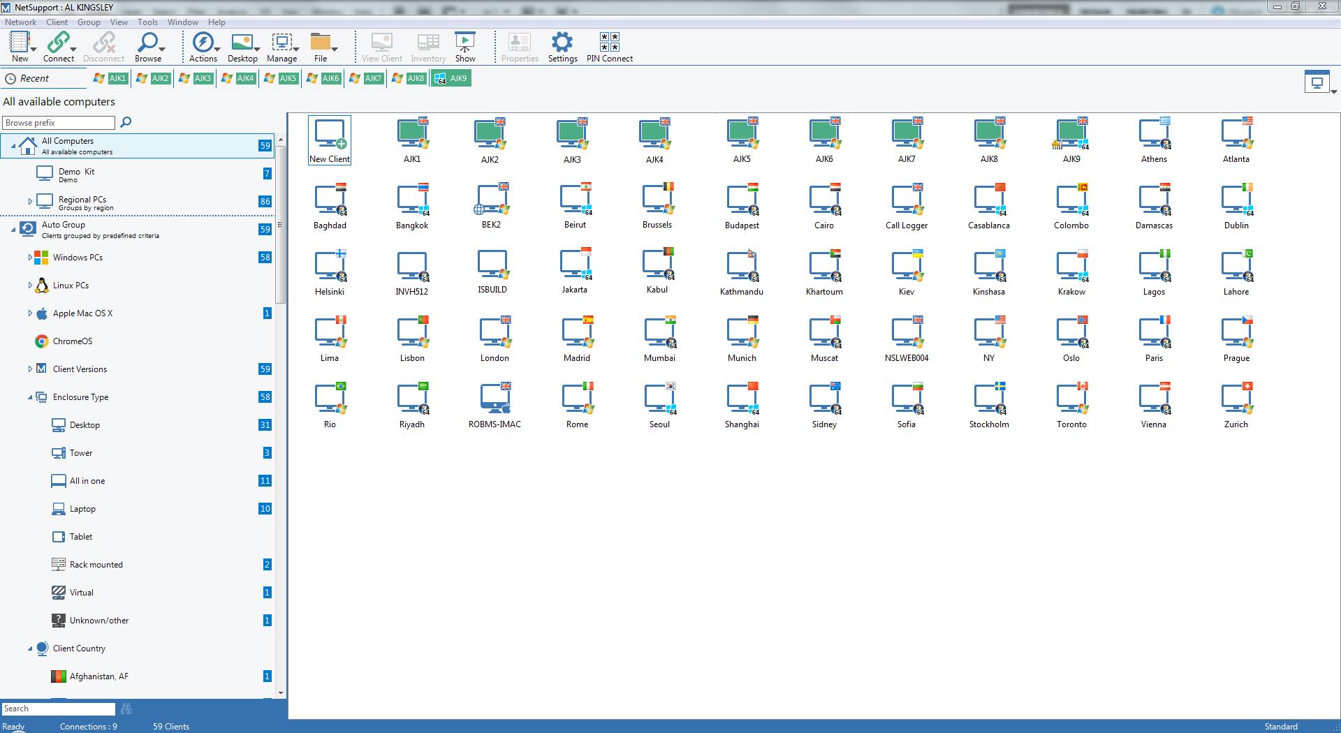 NetSupport Manager提供多种连接方法,确保设备无论在哪里都可以连接到。首先,NetSupport Manager需要在您希望连接的设备上预先安装“客户端”组件,并在您希望发起远程控制连接的设备上安装“主控”组件/应用程序。
