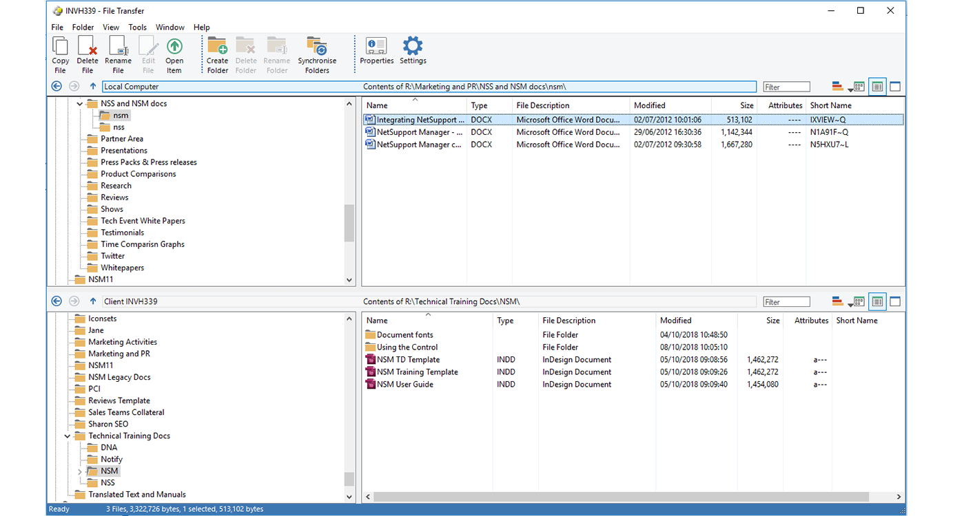 最新版本的NetSupport Manager还具有实时文件夹功能。在进行将文件传输到远端PC的操作时,文件传输视图的顶部会显示远端桌面上任何已打开文件夹的路径(资源管理器窗口),以便快速选择。