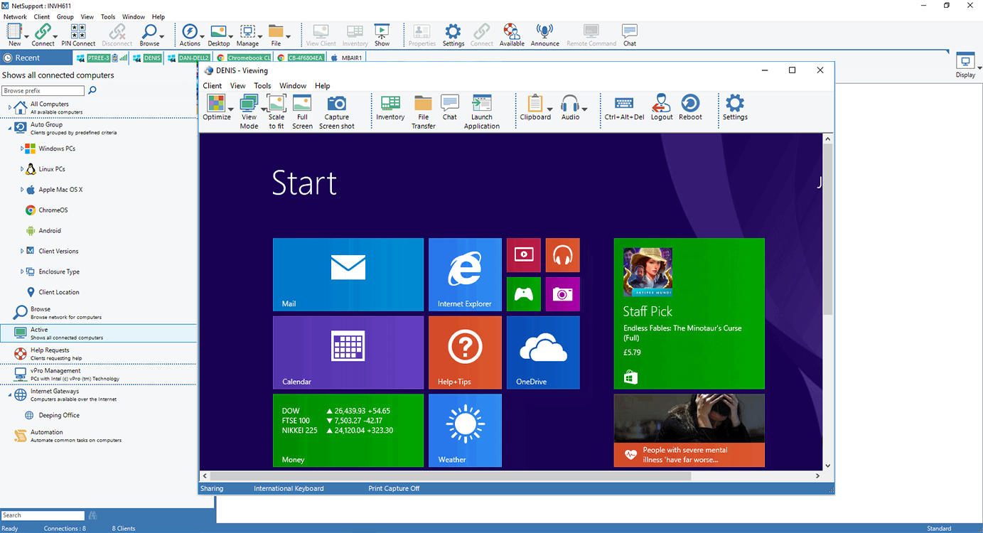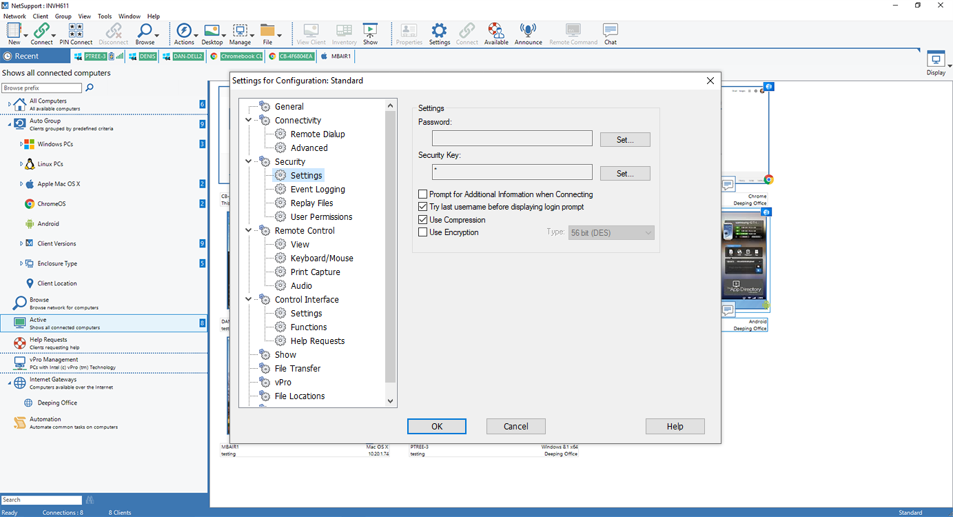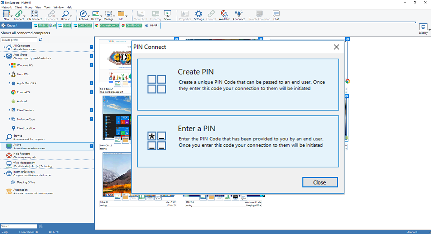 新的“PIN连接”功能只需通过共享匹配代码即可让用户快速连接,而NetSupport Manager的“随时可用”功能确保计算机能够在一天XNUMX小时的任何时间建立连接,通过“网络唤醒”实现远程开机和关机,对于Intel® vPro™系统,甚至在BIOS级别进行远程管理。