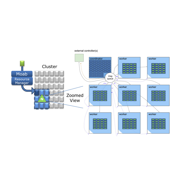 Nitro与其他HPC调度程序(例如Platform LSF,PBS Pro,Moab / TORQUE,UGE和SLURM)共存。由于Nitro具有分阶段的协调器-工作器体系结构,因此Nitro吞吐量会随着分配给会话的核心数量而增加。使用简单的语法:一行=一个任务,一行包含一个可执行命令。如果当前的HTC作业语法需要转换,则可以创建任务过滤器以自动重新格式化为“任务”定义语法。将Nitro与Moab,TORQUE或SLURM结合使用时,可以将其与Viewpoint门户集成在一起,以简化使用并简化提交和管理。