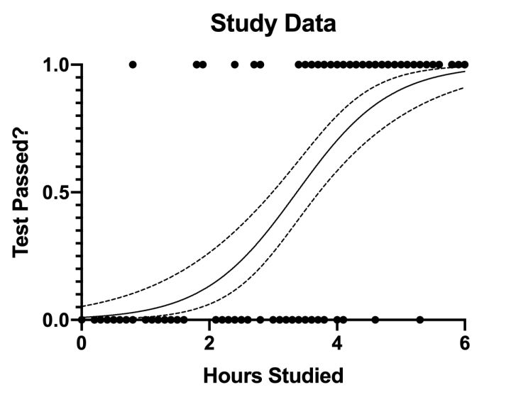此外,在执行单一逻辑回归分析(或具有单一独立变量的多元逻辑回归)时,您现在可以选择在相关的逻辑图来绘制置信带(confidence band)!