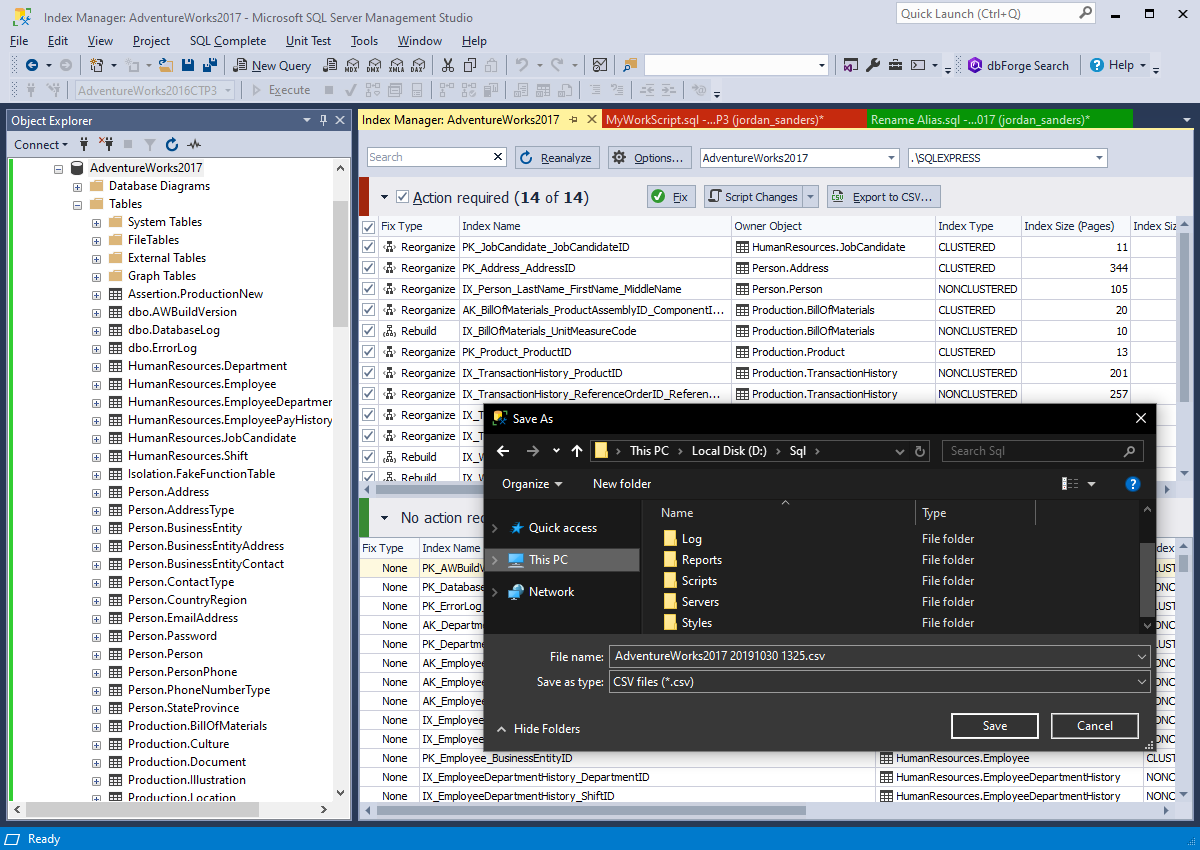 dbForge Index Manager分析和修复SQL索引碎片问题