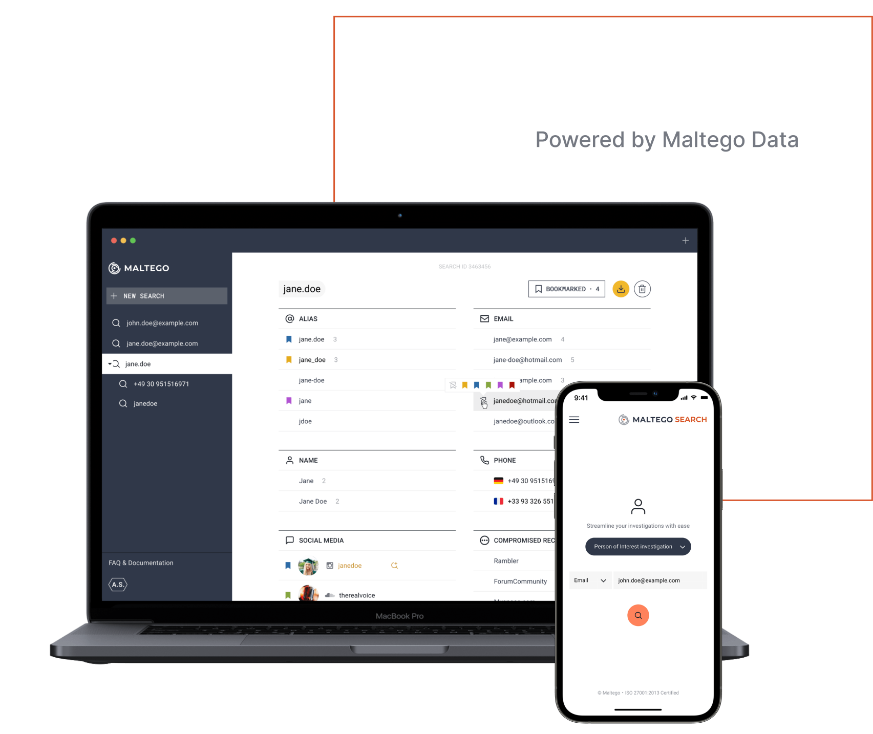 直接从网络访问社交媒体、暗网、被入侵的数据库和身份数据库的数据,而不会影响操作安全性。不再需要 VPN 或傀儡。无需下载其他软件。无需 API 密钥。Maltego 搜索检查: