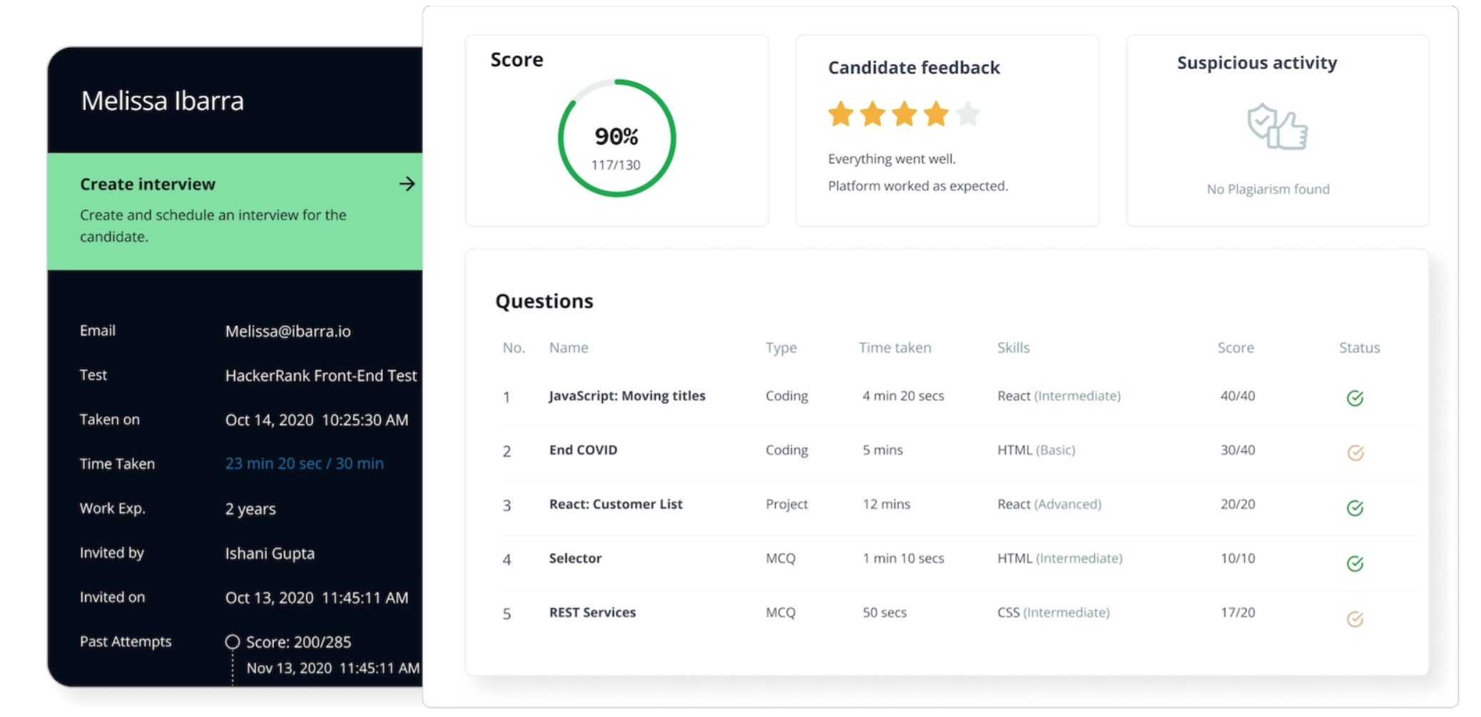 o 支持自动化评分,快速评估候选人的代码质量和效率。