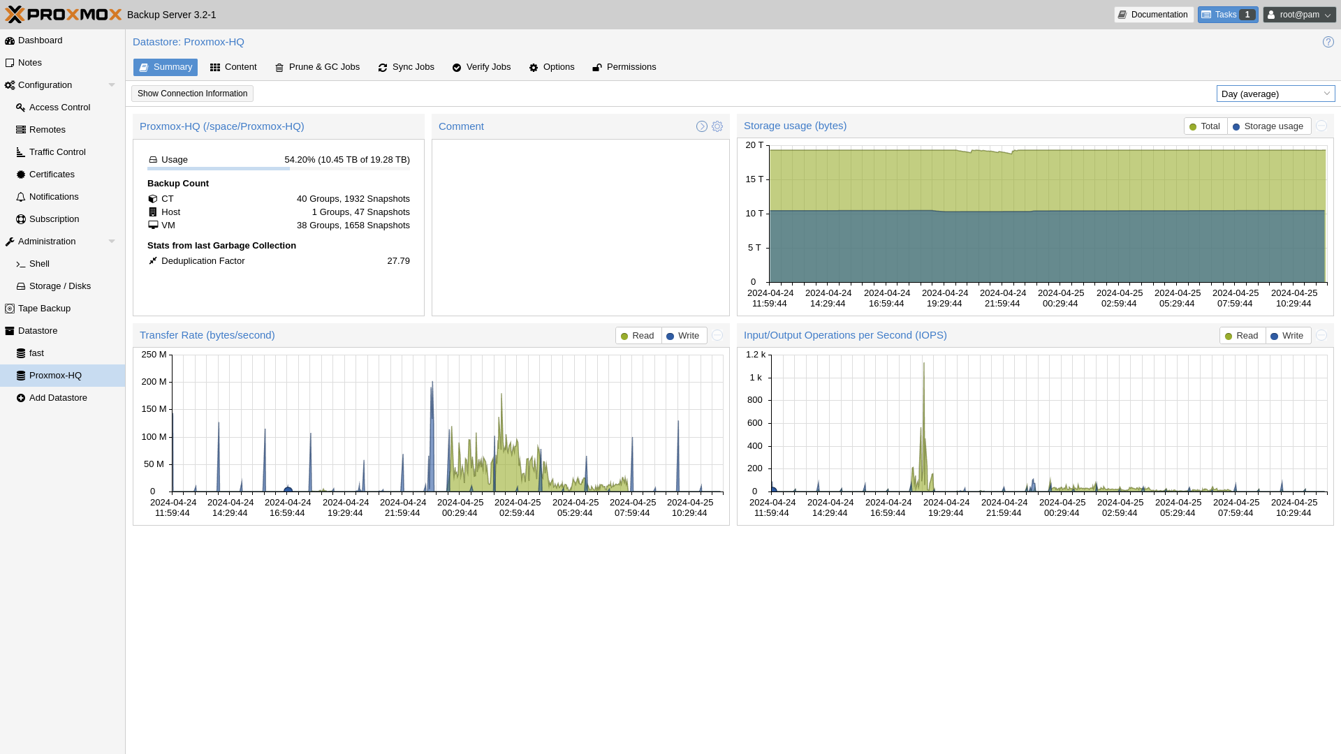 性能-整个 Proxmox Backup 软件堆栈都是用 Rust 编写的,Rust 是一种现代、快速且内存高效的语言。Rust 提供高速和内存效率,部分原因是它缺乏运行时和垃圾收集器。其丰富的类型系统和所有权模型保证了内存安全和线程安全。增量和重复数据删除-备份从客户端以增量方式发送到 Proxmox 备份服务器,然后对数据进行重复数据删除。通常,定期备份之间的更改很低。仅读取和发送更改可以减少使用的存储空间和网络影响。定期备份通常会产生大量重复数据。Proxmox Backup 解决方案中的重复数据删除层减少了重复数据量,从而减少了数据存储所需的物理空间。进行重复数据删除时,有不同的策略可以在性能和/或重复数据删除率方面获得最佳结果。根据数据类型,数据可以拆分为固定或可变大小的块;Proxmox 备份服务器支持这两种策略。
