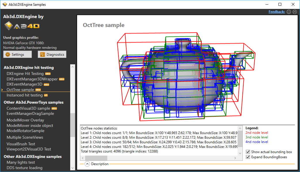 Ab3d.DXEngine 是一款极速的3D渲染引擎,可用于.NET桌面应用程序。Ab3d.DXEngine 采用超高速多线程渲染技术,能够充分利用显卡,提供几乎与使用C++时相当的极致性能。